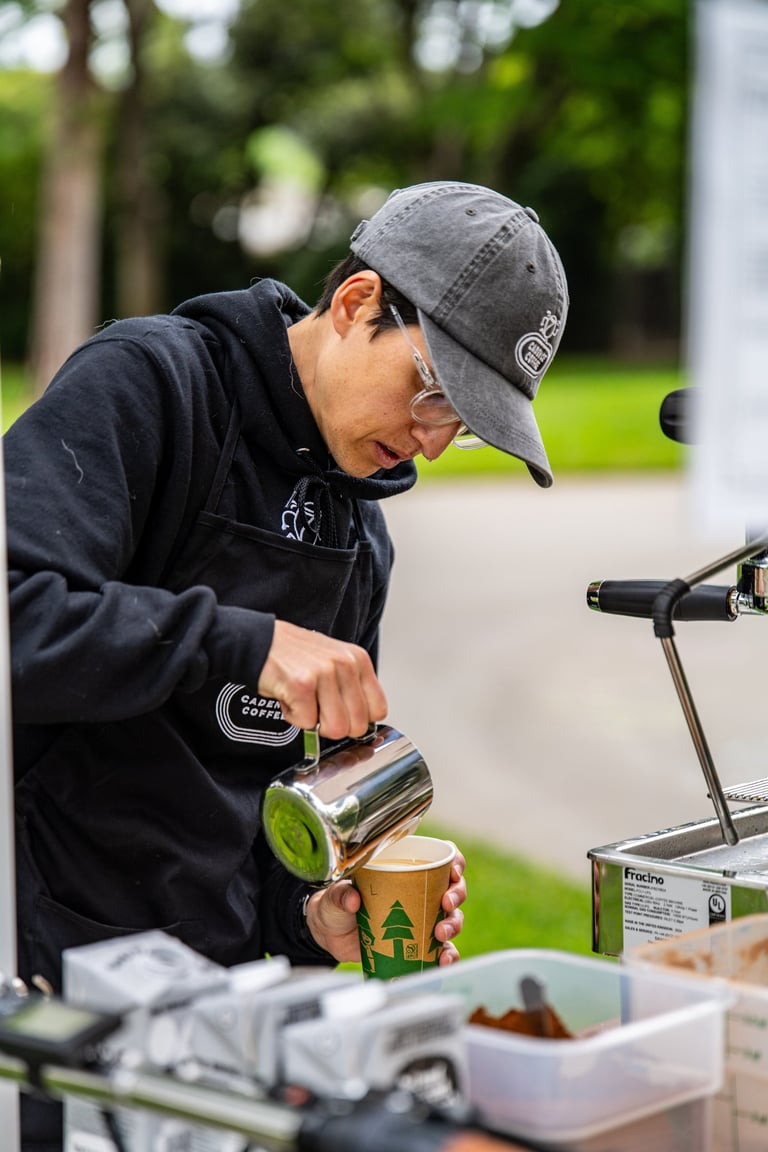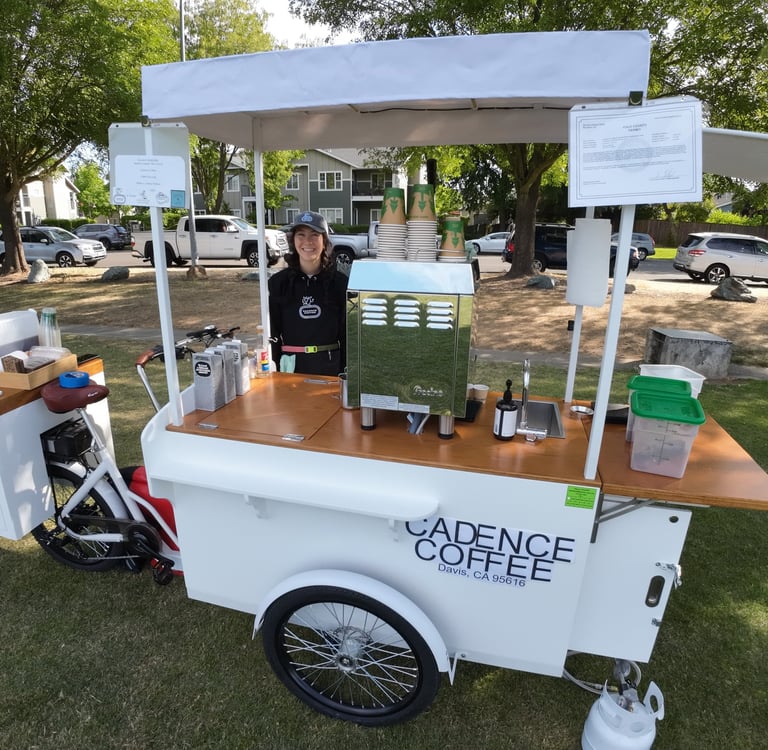 Cadence Coffee is an athletic themed coffee cart tricycle fitted with an espresso machine. We primarily make espresso based drinks like lattes, mochas and cappuccinos.
